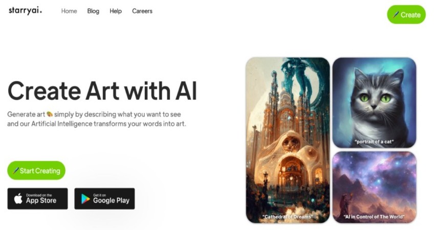 StarryAI turns text prompts into images while giving users full ownership of the results. It offers two modes: one for realistic art and another for more abstract results. The app is available on iOS, Android, and the web. It’s designed for ease of use with preset styles and a credit-based model. Good for mobile users who want to experiment.